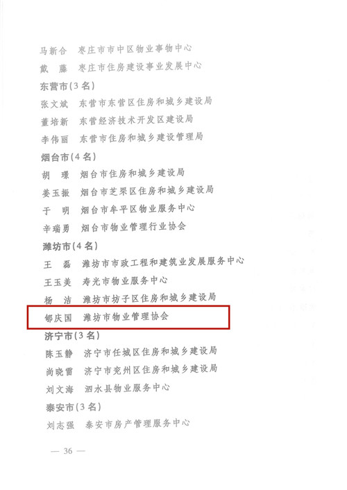 2019年,山東省住房和城鄉(xiāng)建設(shè)廳開展了物業(yè)服務(wù)行業(yè)文明創(chuàng)建“標(biāo)準(zhǔn)建設(shè)年”活動,為表揚(yáng)鼓勵(lì)先進(jìn),發(fā)揮示范引領(lǐng)作用,激發(fā)創(chuàng)建工作熱情,經(jīng)逐級申報(bào)、審核、公示等程序,公管公司獲得以下省級榮譽(yù):濰坊昌大公共建筑物業(yè)管理有限公司榮獲“全省物業(yè)服務(wù)行業(yè)文明創(chuàng)建標(biāo)兵企業(yè)”榮譽(yù)稱號;總經(jīng)理郇慶國兼濰坊市物業(yè)協(xié)會會長榮 ......