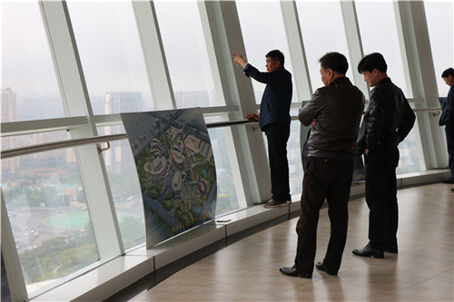 隨后,郇會(huì)長(zhǎng)帶領(lǐng)考察團(tuán)登上市文化藝術(shù)中心觀(guān)光塔,一覽濰坊市貌。