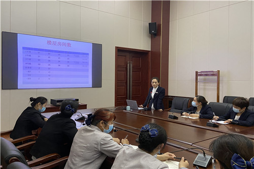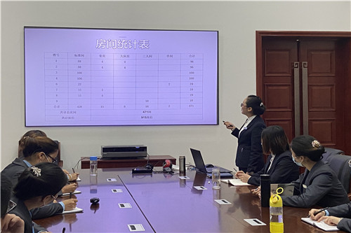 5月23日,客房部針對(duì)房型的不同,通過(guò)互動(dòng)提問(wèn)的方式與員工溝通,切實(shí)提高員工對(duì)客房工作的全面了解。
