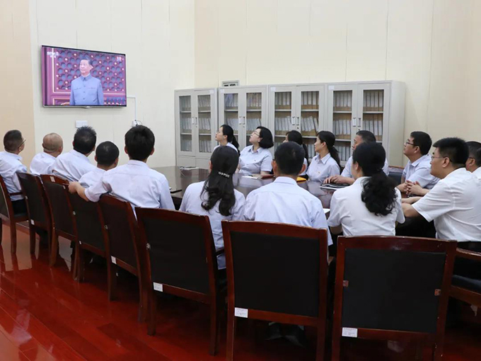 7月1日上午8:00,公司黨委組織全體在職黨員觀看慶祝中國共產(chǎn)黨成立100周年大會直播節(jié)目。隨后,黨委書記郇慶國同志帶領(lǐng)全體在職黨員重溫入黨誓詞,重溫莊嚴(yán)承諾。